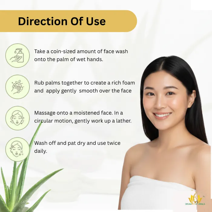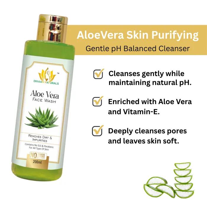 Dixaan Naturals Face Wash is a gentle and safe formulation to prevent acne and breakouts and promote healthier and clearer skin. Aloe Vera, the face wash fights bacterial & microbial activity and calms skin inflammation. The Aloe Vera face wash is one of the best additions to your daily skincare routine to remove the dirt and impurities from your face and leave it feeling fresh and hydrated.