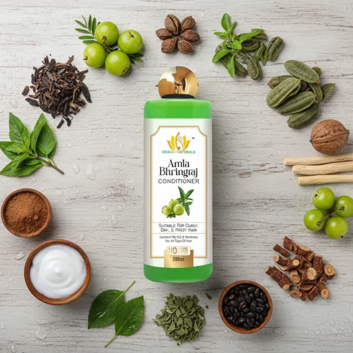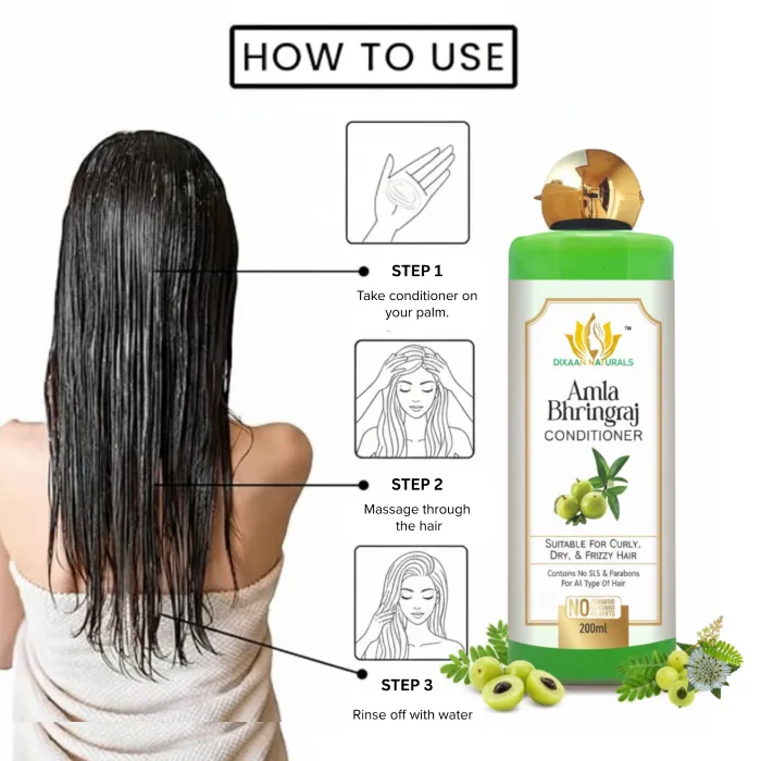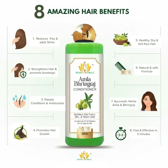 Dixaan Naturals Conditioner Enriched with the goodness of amla and bhringraj, this conditioner helps combat hair fall and promotes softer, shinier locks. Suitable for all hair types, Amla & Bhringraj Hair Conditioner is a 100% natural, paraben and silicone-free formulation that nourishes and strengthens hair. With its 100% natural bio-actives, it gently conditions and detangles hair, leaving it smooth and manageable.