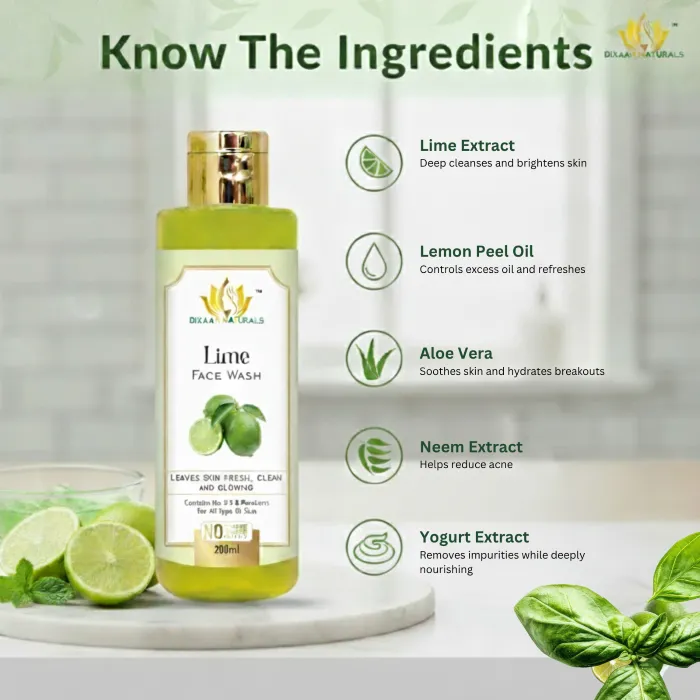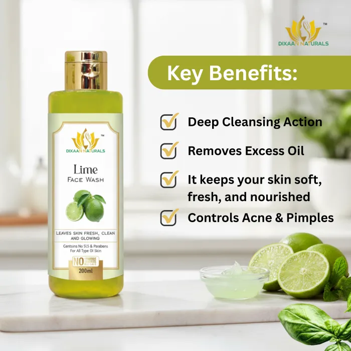Dixaan Naturals Lime Face Wash Energize your skin with the refreshing power of lime. This invigorating face wash gently cleanses away dirt, oil, and impurities while leaving your skin fresh and glowing. Enriched with the natural goodness of lime extracts, it helps control excess oil, tightens pores, and revives dull, tired skin with a burst of citrus freshness. Perfect for daily use, it gives you a clean, oil-free, and radiant look after every wash.