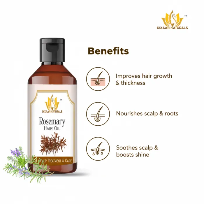 Dixaan Naturals Rosemary Hair Oil helps strengthen hair roots and promote healthy hair growth. Enriched with rosemary extract and nourishing oils, it improves scalp circulation, reduces hair fall, and adds natural shine. Suitable for all hair types and for both men and women.