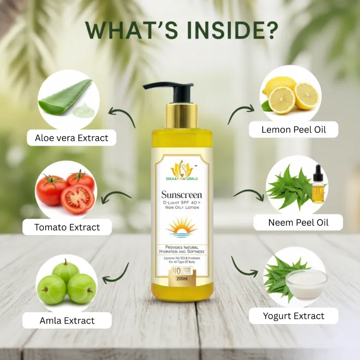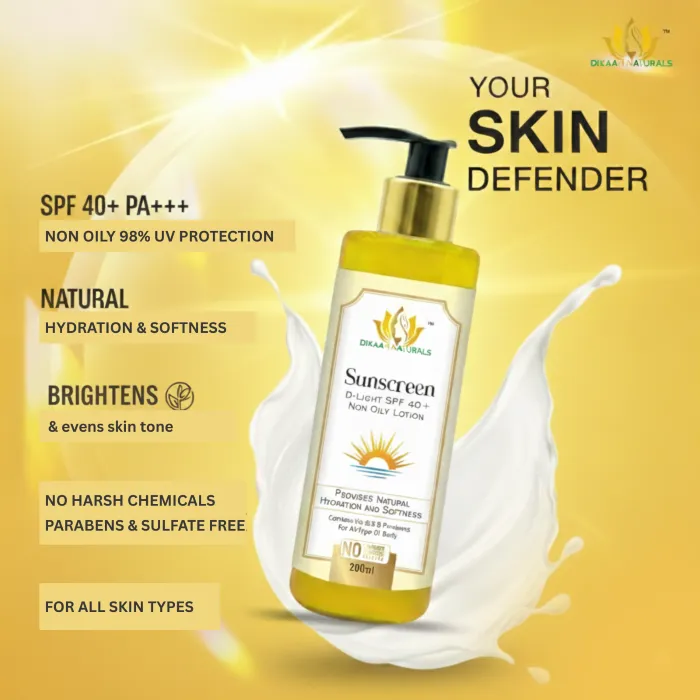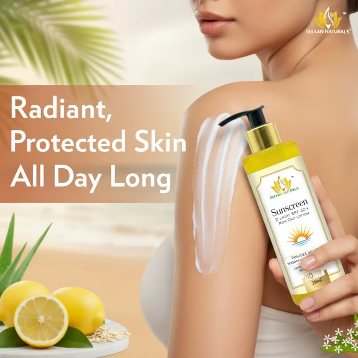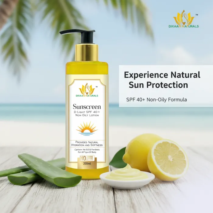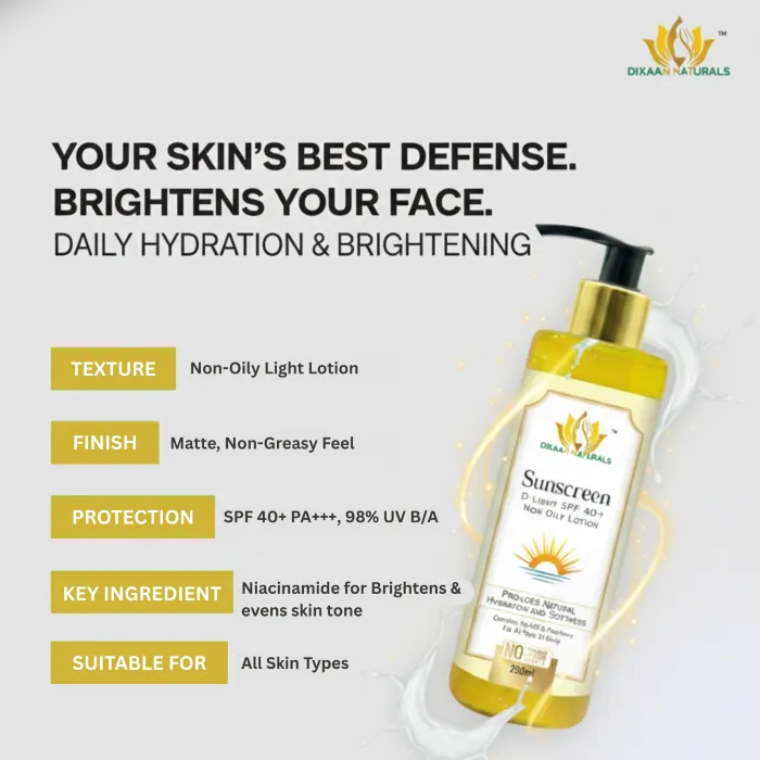 Dixaan Naturals Sunscreen Lotion Protect your skin from harmful sun rays with this lightweight, non-greasy sunscreen lotion. Enriched with broad-spectrum UVA & UVB protection, it helps prevent sunburn, tanning, and premature aging. The quick-absorbing formula hydrates your skin while forming a protective barrier against environmental damage. Suitable for all skin types, it keeps your skin safe, soft, and radiant under the sun.